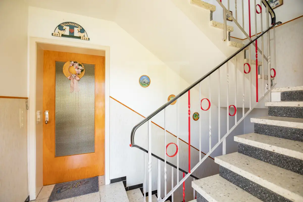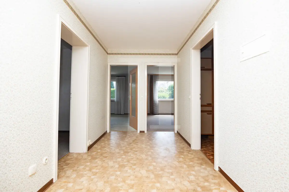 Die Immobilie wird über ein Treppenhaus betreten, von dem aus jede Wohneinheit sowie die Nebenräume erreichbar sind. Die Erdgeschosswohnung bietet Ihnen zwei bis drei ruhig gelegene Schlafzimmer, einen hellen Wohnbereich mit ebenerdigem Zugang zum Garten, eine Küche mit angrenzendem Esszimmer, ein Tageslichtbad sowie ein separates WC.